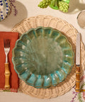 Add a touch of seaside charm to your table with the Scallop Dinner Plate. Handcrafted and hand-painted by skilled artisans, this plate reflects the natural beauty of the ocean with its scalloped edges and serene sea-green glaze. Its organic shape and artisanal finish make it a stunning addition to any dining setting.