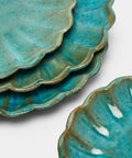 • Design: Scalloped edges inspired by seashells; textured glaze in ocean hues.