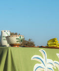 • Design: Hand-painted palm motif in rich green and deep blue accents, bordered with intricate geometric patterns.