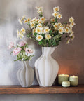 The Athena Oblique Vase by RITUALI DOMESTICI is a sculptural ceramic centerpiece defined by its flowing curves, textured surface, and distinctive oblique silhouette. Elegant and architectural, it stands beautifully on its own or paired with simple floral stems.