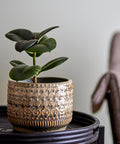 Add a touch of elegance and texture to your home décor with the Bloomingville Flower Pot. This beautifully crafted ceramic pot features an intricate embossed pattern in earthy tones, making it a perfect statement piece for any room.